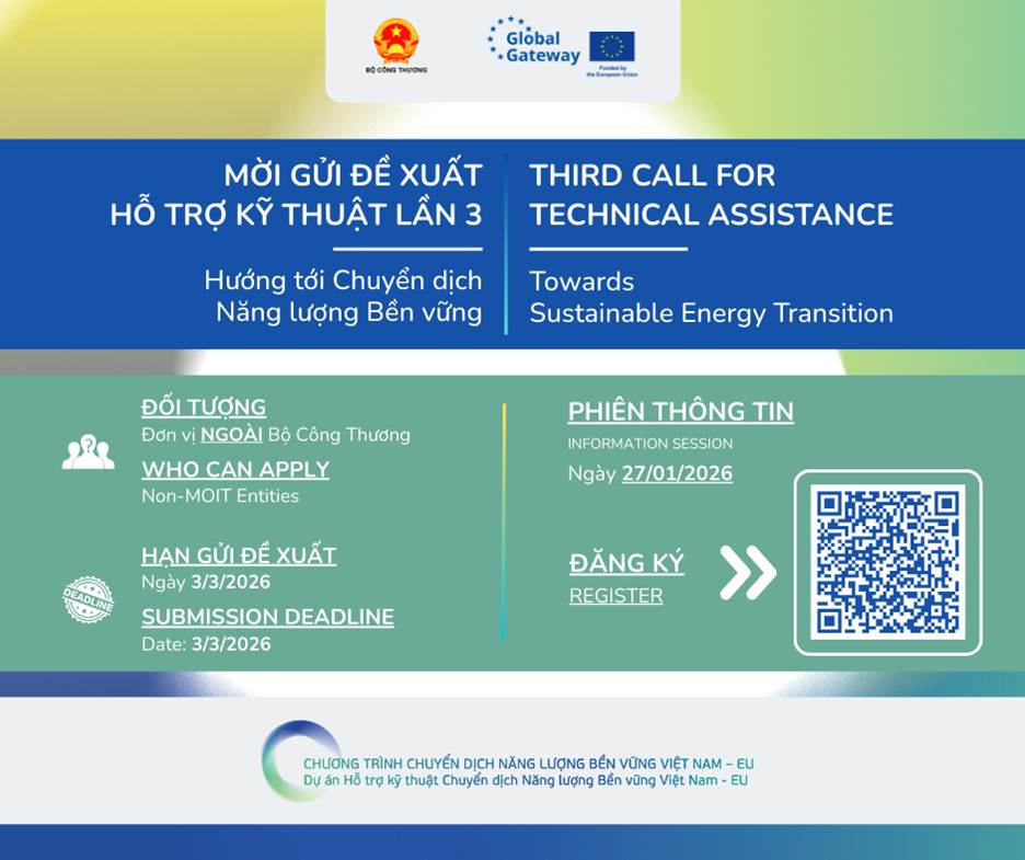 Hanoi, 06 January 2026 – The EU–Viet Nam Sustainable Energy Transition Facility (EVSET Facility) has launched the Third Call for Technical Assistance (TA) to support Viet Nam’s sustainable energy transition. This Call is part of the EU-funded EU–Viet Nam Sustainable Energy Transition Programme (SETP) and is only applicable to entities beyond the Ministry of Industry …